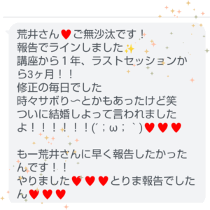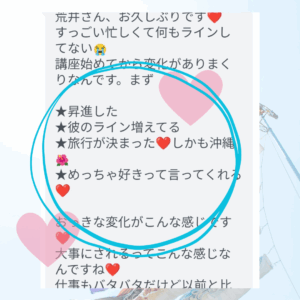 私が講座で大切にしていること、これまで成就された方は、「自分の中で革命を起こしていたら、いつのまにか彼が変わっていた」というのが特徴です。ですので、彼に無理して連絡を取る必要もなかったりします。